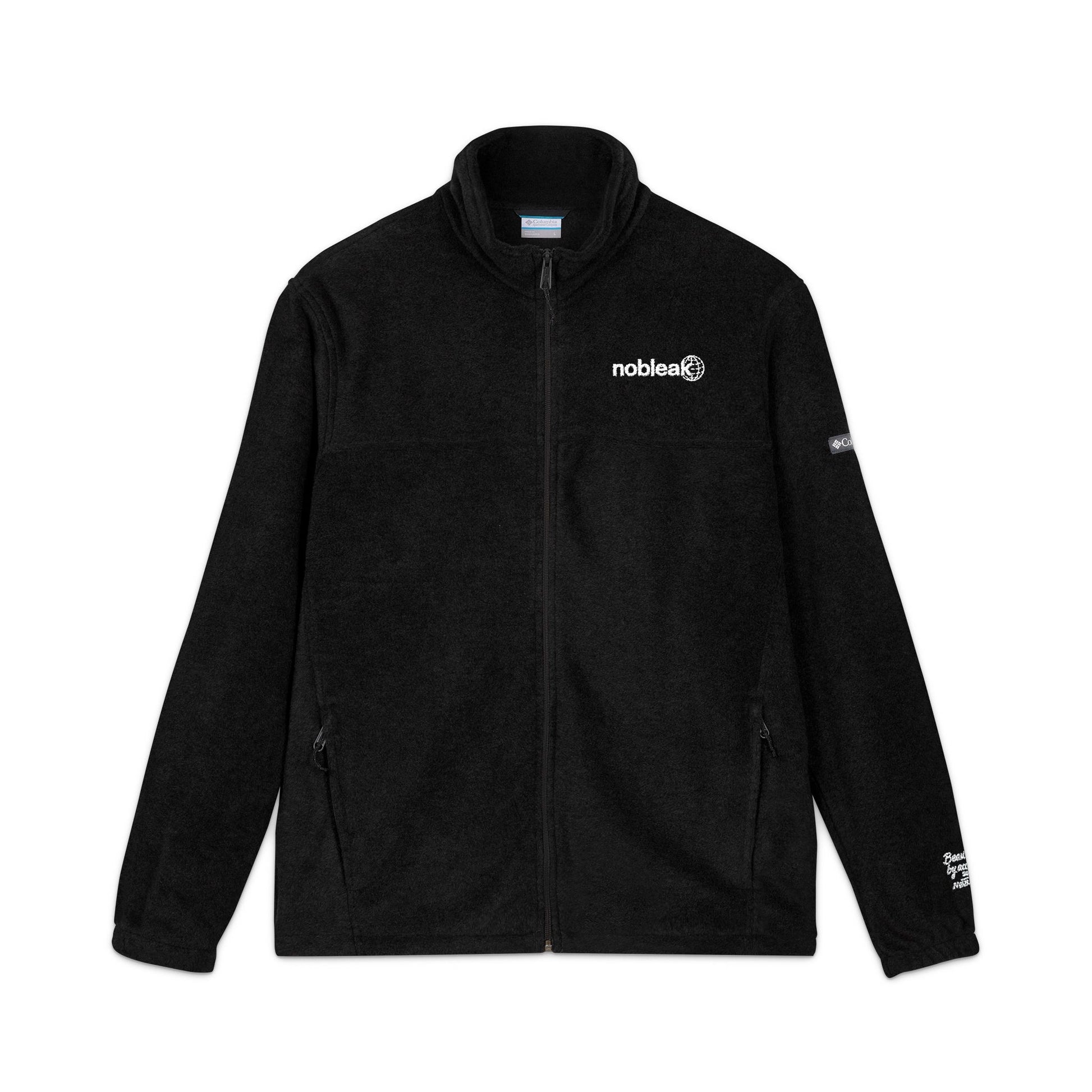 Embroidered Black Fleece Jacket — Graphic Chest & Sleeve Design